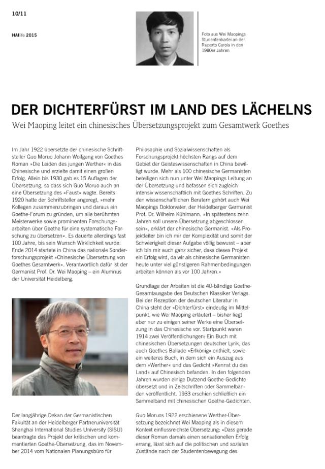 Der Artikel über das Goethe-Projekt in der HAI-Magzin