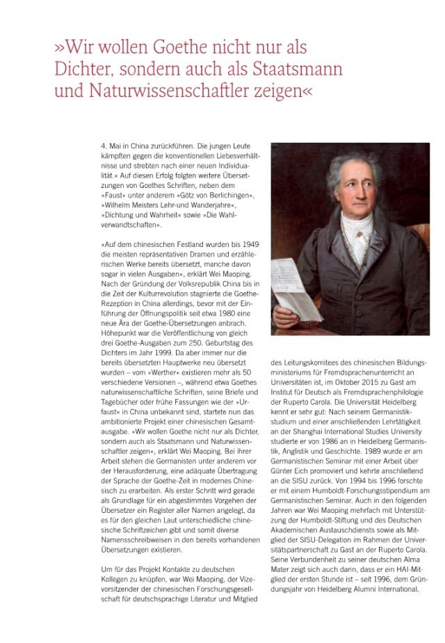 Wei Maoping leitet ein chinesisches Übersetzungsprojekt zum Gesamtwerk Goethes