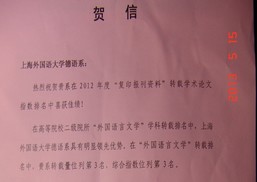 来信认为:“在高等院校二级院所‘外国语言文学’学科转载排名中,上海外国语大学德语系具有明显领先优势。在‘外国语言文学’转载排名中,贵系转载量位列第3名,综合指数位列第3名。