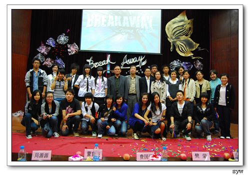 晚会同名歌曲《Breakaway》(破茧成蝶)正式拉开晚会序幕。德语系党总支书记费国强老师首先进行了晚会致辞。费老师说他被晚会开场所爆发的热情所震撼,也欣喜地看到08级新生开学以来所表现出的积极进取、奋发图强的精神。费老师希望各位08级新生以本台晚会为契机,积极投入各项活动,不仅专业知识过硬,各方面也要均衡发展。在大学生活伊始,先要学会做人,并响应党中央关于构建和谐社会的号召,在德语系构建一个同心同德、和和美美的环境。最后费老师预祝本台晚会取得成功。